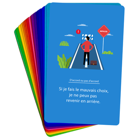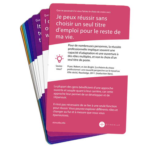 Les Cartes des Mythes de Carrière sont un outil novateur en orientation et développement de carrière, conçu pour les conseillers d’orientation, les conseillers pédagogiques et les enseignants qui souhaitent engager des conversations constructives avec leurs élèves et les préparer à l’avenir du monde du travail.